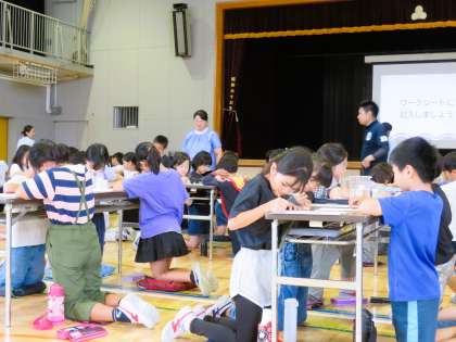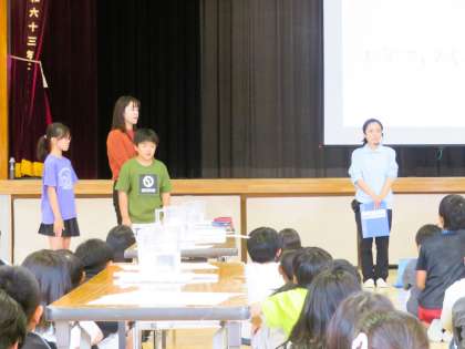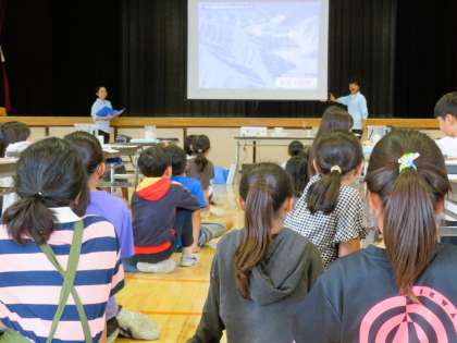 4年生が東京都水道局の出前授業「水道キャラバン」を受けました。私たちの飲み水が、いかに様々な課程を経て、安全でおいしい水になっているかを勉強しました。