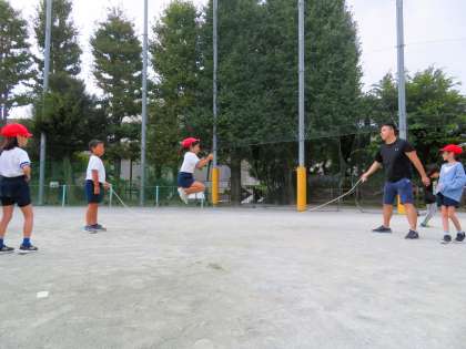 長縄跳びは、自分たちに合った目標を立てて挑戦しています。そして、何よりも大切なのはチームワークです。クラスの一人一人が大切な一人なのです。