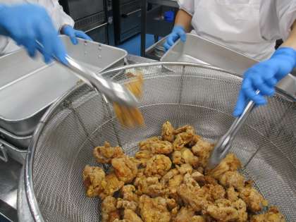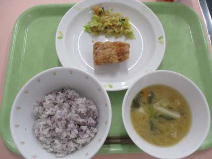 今日は「とりにくのから揚げ」です。もも肉という部位を使用しています。野菜には小松菜・油揚げなどを使用しています。美味しくいただきましょう。