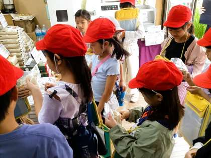 さくらや米店さんが、松丘小学校に収めているお米は、減農薬の「特別栽培」で育てられた、岩手県の「ひとめぼれ」です。だからこそ学校のご飯は美味しいのです。わかりやすいお話とともに普段見ることのできない精米機なども見せていただきました。