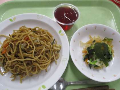 今日は「ソース焼きそば」です。松丘まつりに合わせてみました。松丘まつりとても楽しそうでしたね。美味しくいただきましょう。