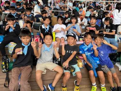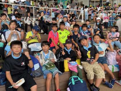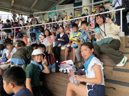 イルカショースタジアムで、ゆったりと泳いでいるイルカを見ながら、待ちに待ったお弁当タイムです。