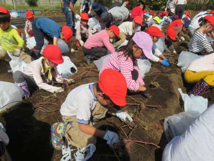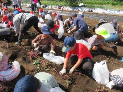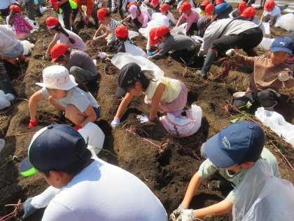 畑の方に感謝をしながら、いも掘りはスタートしました。