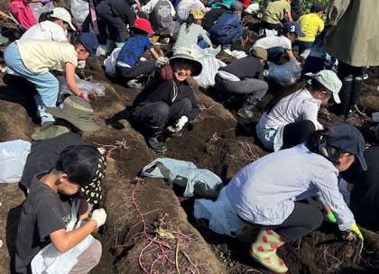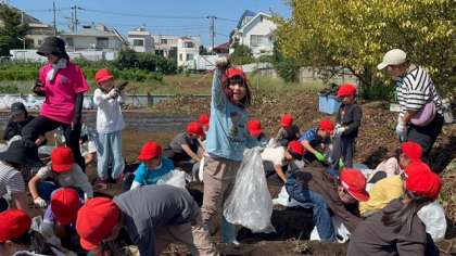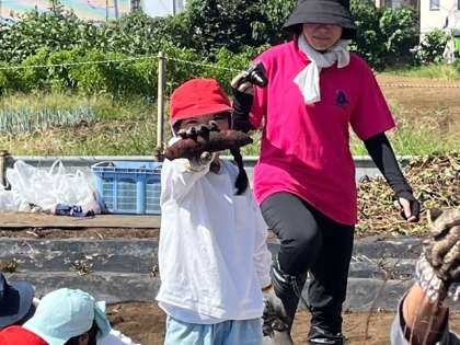 「こんな大きなおいもが取れたよ!」と、掘ったさつまいもを誇らしげに掲げていました!