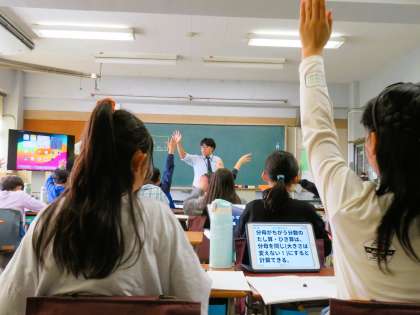 本校で、東京都教育委員会『東京教師道場』の研究授業が行われました。東京教師道場の部員として、授業力向上を目指す各区市町村の教員が本校に集まりました。授業者は5年生の三井教諭で算数の研究授業に取り組みました。