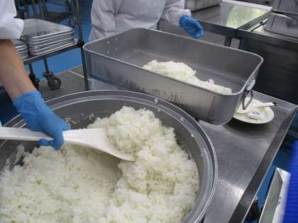 今日は「おろし豚丼」です。大根おろしの水分と出汁で作っています。ねぎ・人参・大根・豚肉・玉葱を使用しています。美味しくいただけるといいですね。