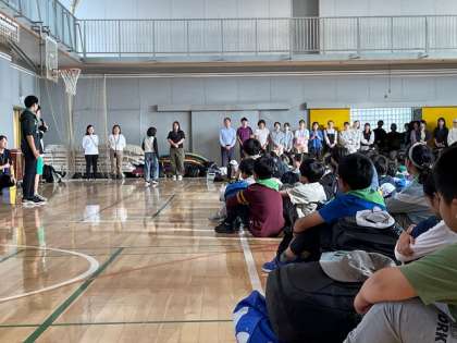 今朝は、楽しみにしていた5年生川場移動教室の出発式です。私は学年のめあてである「時間」「協力」「責任」、そして「友達の大切さ、仲間の良さをしっかり感じて来てほしい」という話をしました。川場の自然や歴史を、直接肌で感じながら心と体を鍛え、自立的な生活態度を身に付けて来ます。
