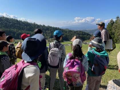 明日の村めぐりのゴール地点である田園プラザが見えました。そして鹿などの動物の説明にも興味津々です。