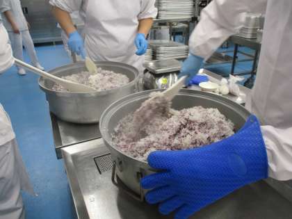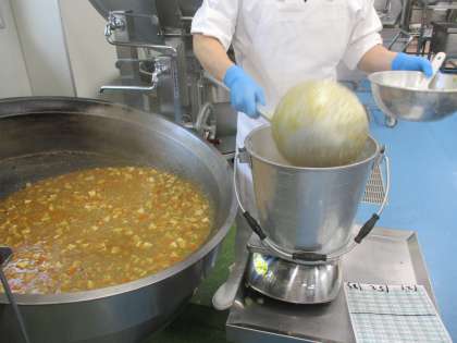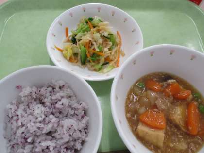 今日は「生揚げのそぼろ煮」です。生揚げは木綿豆腐を高温の油で揚げて作ります。たまねぎ・人参・じゃがいも・グリンピース・椎茸・豚ひき肉を使用して作っています。美味しくいただけるといいですね。