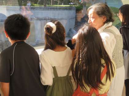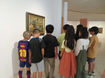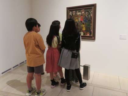 北川民次さんは、画家としてたくさんの絵画を残しましたが、児童美術の教育論でも有名な方です。本校図工の栖原主任教諭は、大学の時に北川民次さんの著書を何冊も読んだそうです。そして指導者は、上手に絵が描けるような方法を教えるのではなく、美術を通して、子どもの自由な心を育んでいくことが大切だという北川さんの考えに感銘を受けたということです。図工の教員としての原点だと、今でも思っているそうです。