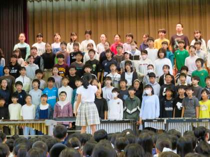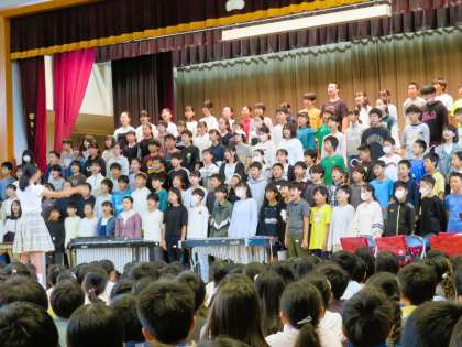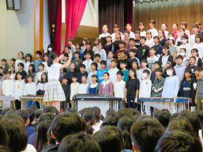 「COSMOS」とは古いギリシアの言葉で「宇宙」という意味です。一見ちっぽけな私たち一人一人を広大な宇宙とリンクさせた、壮大で神秘的な歌詞を6年生は美しいハーモニーで歌い上げてくれました。