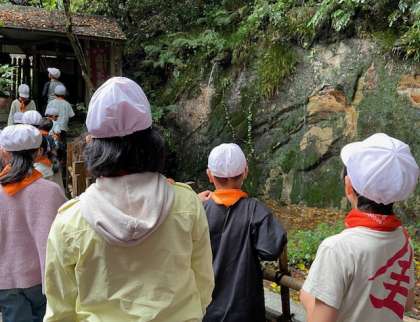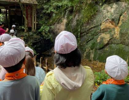次の見学地である、等々力不動尊発祥のもととなった不動の瀧に到着しました。龍の口から湧水が流れ落ちています。湧水が途絶えることは無いそうです!