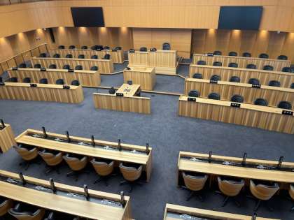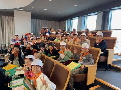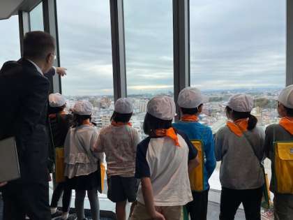 世田谷区役所に到着しました。建て替えが終わった東棟など、新たな建物内を見学させていただきました。東棟10階には、展望ロビーがあり、南西側の眺望が楽しめます。議場にも入ることができました!