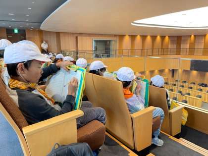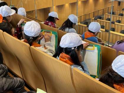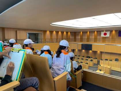 東棟9階、10階には吹き抜け構造の区議会議場があります。傍聴席数を増設するとともに、新たに親子傍聴室を設置し、お子さんと一緒に気兼ねなく傍聴できるようになりました。子どもたちのたくさんの質問にも答えていただきました。