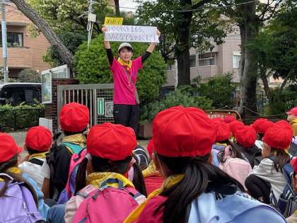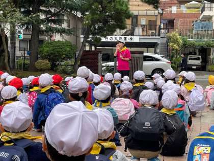 今日は1年生の遠足で砧公園です。雨の心配があり、学校出発を40分早め、雨雲レーダーとも睨めっこの遠足でした。遊ぶ時間は5分短縮しましたが十分に遊び、ポツンポツンと雨が降りはじめた頃には学校に到着することができました。