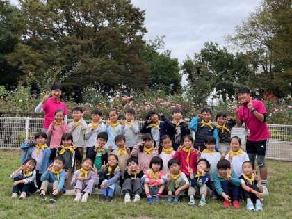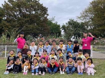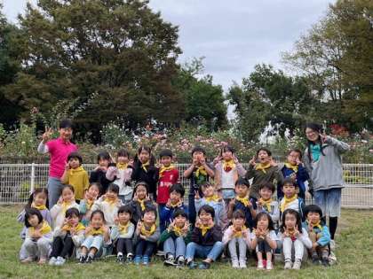 1年生は、砧公園までの長い道のりを元気よくがんばって歩きました。まずは、クラス毎に集合写真を撮りました。