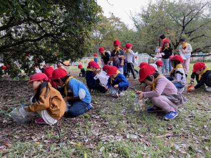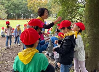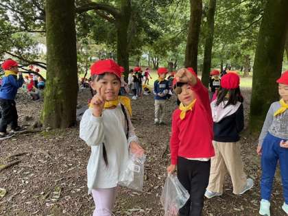雨雲が接近してきて、風も冷たくなってきたので、どんぐり拾いをして学校に戻りました。珍しいどんぐりもたくさんありました!