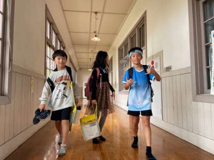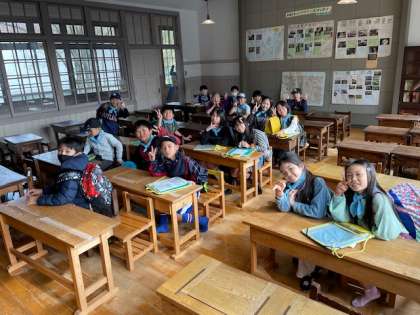 昔の小学校(旧府中尋常高等小学校)です。この校舎は、市立府中第一小学校の前身である府中町立府中尋常高等小学校として1935年(昭和10)9月に建設されました。以後1979年(昭和54)の新校舎建築に伴って取り壊されるまで、多くの子どもたちの学び舎として親しまれてきました。