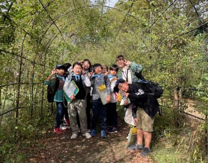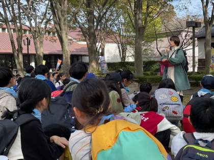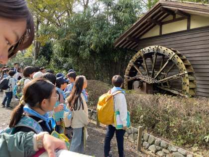 昼食後は、府中郷土の森公園を散策しました。とても広くて池があったり緑が多く自然豊かで落ち着いた雰囲気の公園です。途中に、萩のトンネルや水車小屋などがありました!