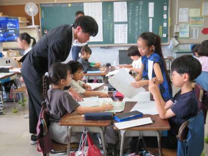 温かい雰囲気の中で授業が展開されていて、子どもたち一人一人が、一生懸命に道案内をしたりする姿や友達の説明を聞きメモをしたりする姿が見られ嬉しく思いました。