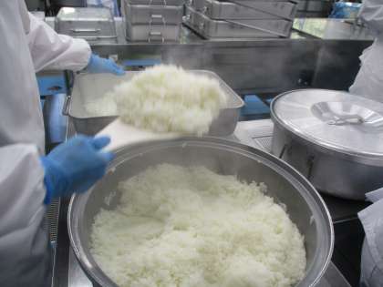 今日は「鶏肉の照り焼き」です。もも肉という部位を使用して焼いています。 にんにく・しょうが・調味料に漬け込んで、オーブンで焼いています。野菜と一緒に美味しくいただけるといいですね。