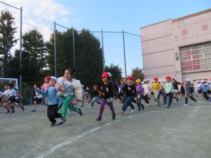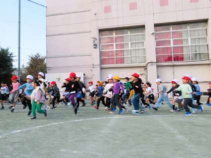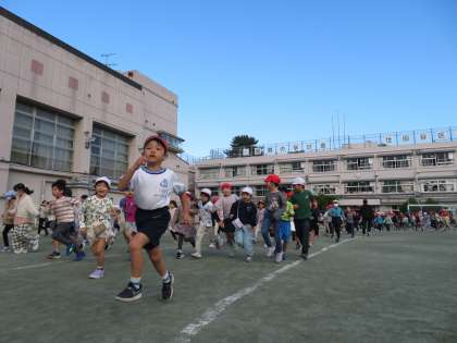 今日の体育朝会は、1・3・6年生の朝ランニングです。学校経営の重点の一つである「健康・体力づくり」への取り組みです。まずは、スキップからスタートです!