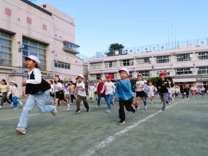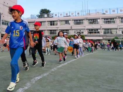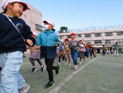 軽快な曲に合わせて、子どもたちは元気いっぱいに走っています。