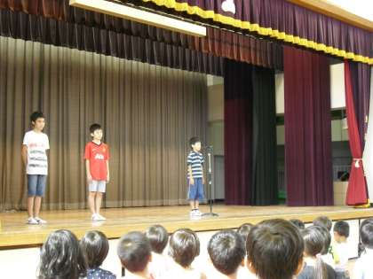 児童代表の言葉は3人の代表児童が2学期にがんばりたいことを話しました。3人とも原稿を読むのではなく自分の言葉でしっかり話ができました。、素晴らしい!