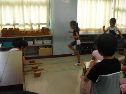 でも、竹を使ってこれをとぶとなると・・・・・大変だ。足にぶつかったら痛そうだ。さあ、どうしよう・・・子どもたちは真剣にリズムを体で感じ表現しています。バンブーダンスをみんながリズムにのってこなせるようになるのを楽しみに待っています。