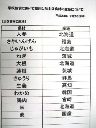 9月20日(木)本日の給食産地