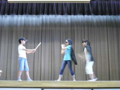 今日の集会は、今までやった集会の中から一場面を出してそれに対してクイズ形式で答える集会でした。