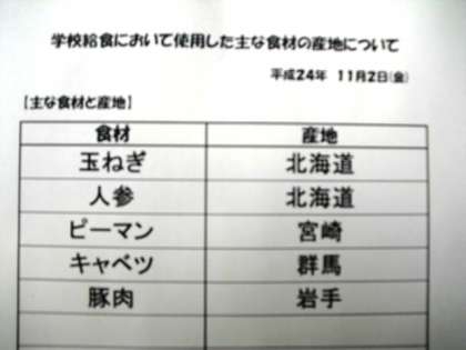 11月2日(金)本日の給食産地