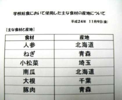 11月9日(金)本日の給食産地