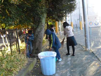 日常は学校主事が、学校の周りを毎日掃除していますが、ほんの少しでもその手伝いができればと思います。なかなか家では取り組まないことですが、ボランティア活動の体験も兼ねています。中学生と一緒に活動することの意義もあります。