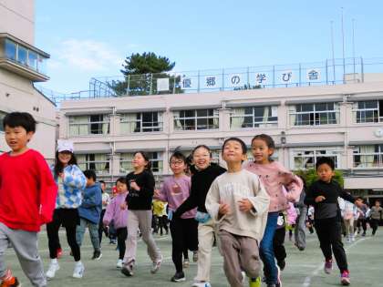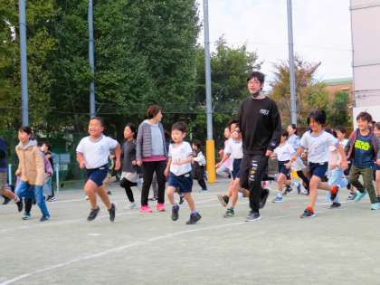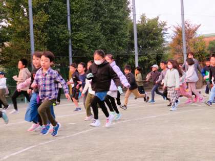 今日の体育朝会は、2・4・5年生の朝ランニングです。学校経営の重点の一つである「健康・体力づくり」への取り組みです。まずは、スキップからスタートです!