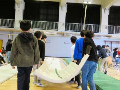 ひな壇、マット、図工室の椅子、パイプ椅子などをてきぱきと後片付けをしてくれました。