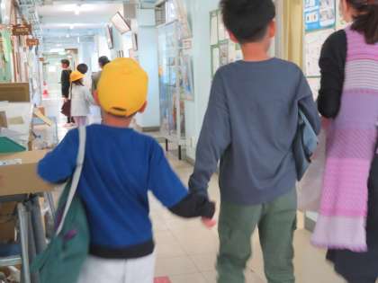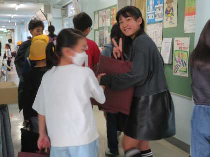 今年度4回目「たてわり集会」の様子です。松丘小学校の特色ある活動の一つとして、異学年の子どもたちと交流し、思いやりの気持ちをさらに向上させるための活動です。