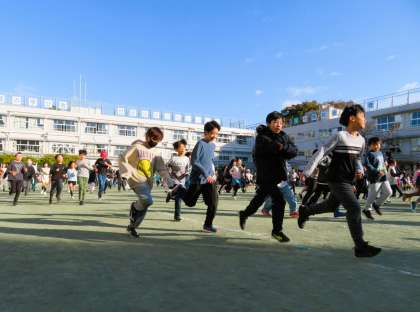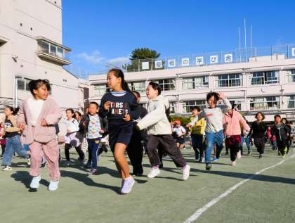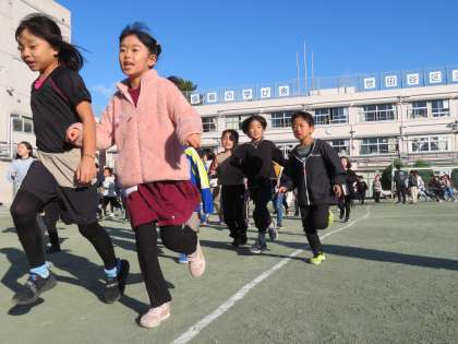 軽快な曲に合わせて、子どもたちは元気いっぱいに走っています!