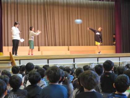 今日は朝の時間に、委員会企画集会がありました。今回の発表は、運動委員会と給食委員会です。寸劇を織り交ぜるなどの工夫があり、楽しみながら委員会の活動内容を知ることができました。