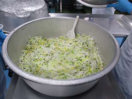 今日は「大蔵大根を使用したサラダ」です。世田谷区でも栽培されています。貴重な大根ですね、今日はサラダにしました。美味しくいただけるといいですね。