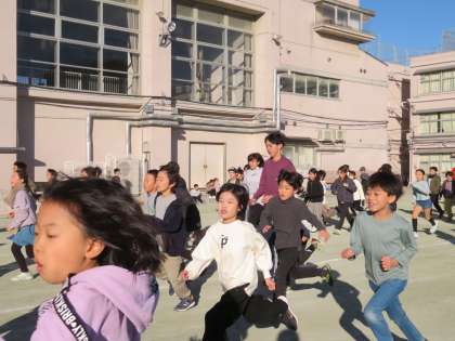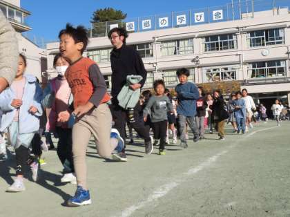先生たちも、子どもたちと一緒に走っています!