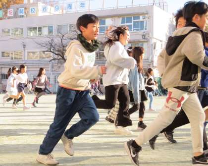 先生が一緒に走っているので、子どもたちも嬉しそうです!