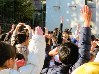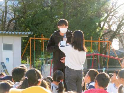 児童集会は集会委員の皆さんによる「先生クイズ集会」です。それぞれの学年の先生の好きなものなどを〇×クイズで出題しました。