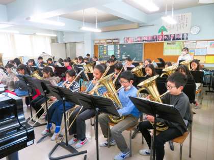今日は、ウォーミングアップで「ふるさと」を演奏していました。