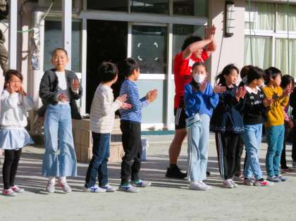 「持久走大会」を様々なところから応援している後輩たちの様子です。1〜4年生の温かさに感激です!