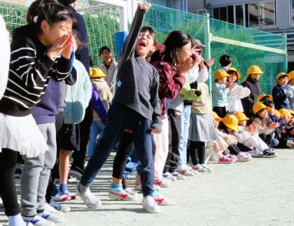 写真は、1年生、1年生、2年生応援の様子です!