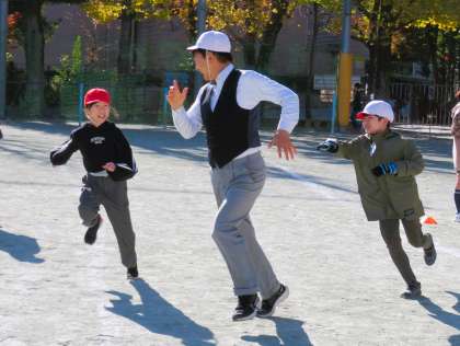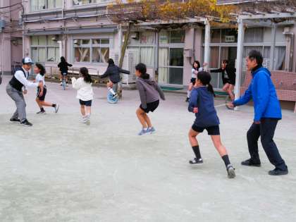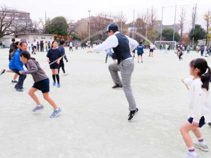私は4年生と一緒に、鬼ごっこや長縄跳びで遊んでいます!