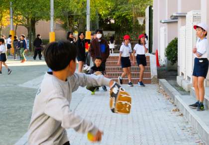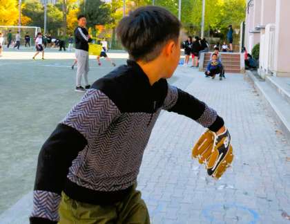 大谷翔平選手からいただいたグローブを付けて、キャッチボールをして遊んでいます!