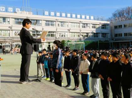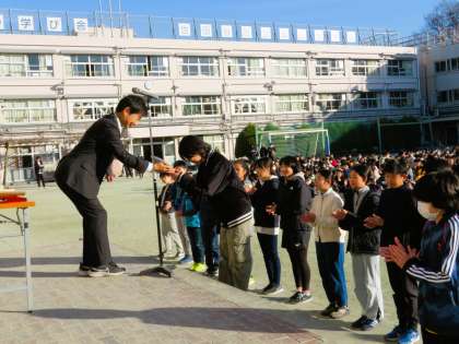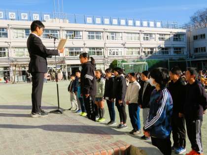 世田谷子ども駅伝、小中学生の部において、男女ダブル優勝の表彰です。団体の部で症状と盾、金メダルをいただきました。
