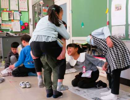 今日は授業はもちろん、お楽しみ会や大掃除をしているクラスも多くありました。担任の先生から通知表が手渡されました。どのクラスも先生が子どもたち一人一人に丁寧に言葉を添えながら手渡しています。